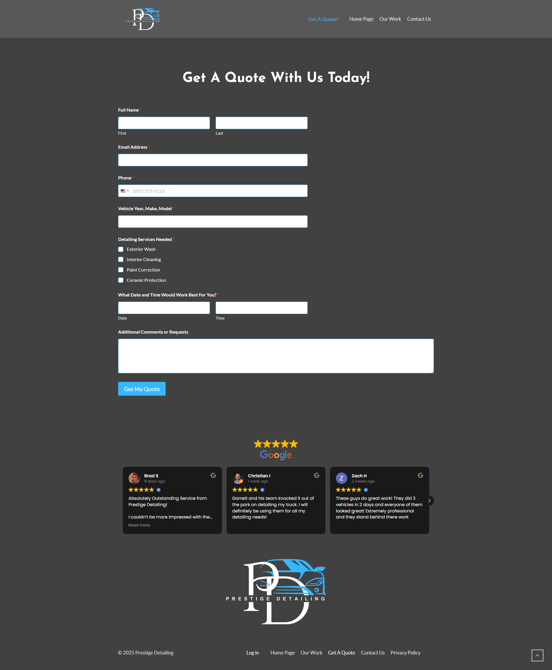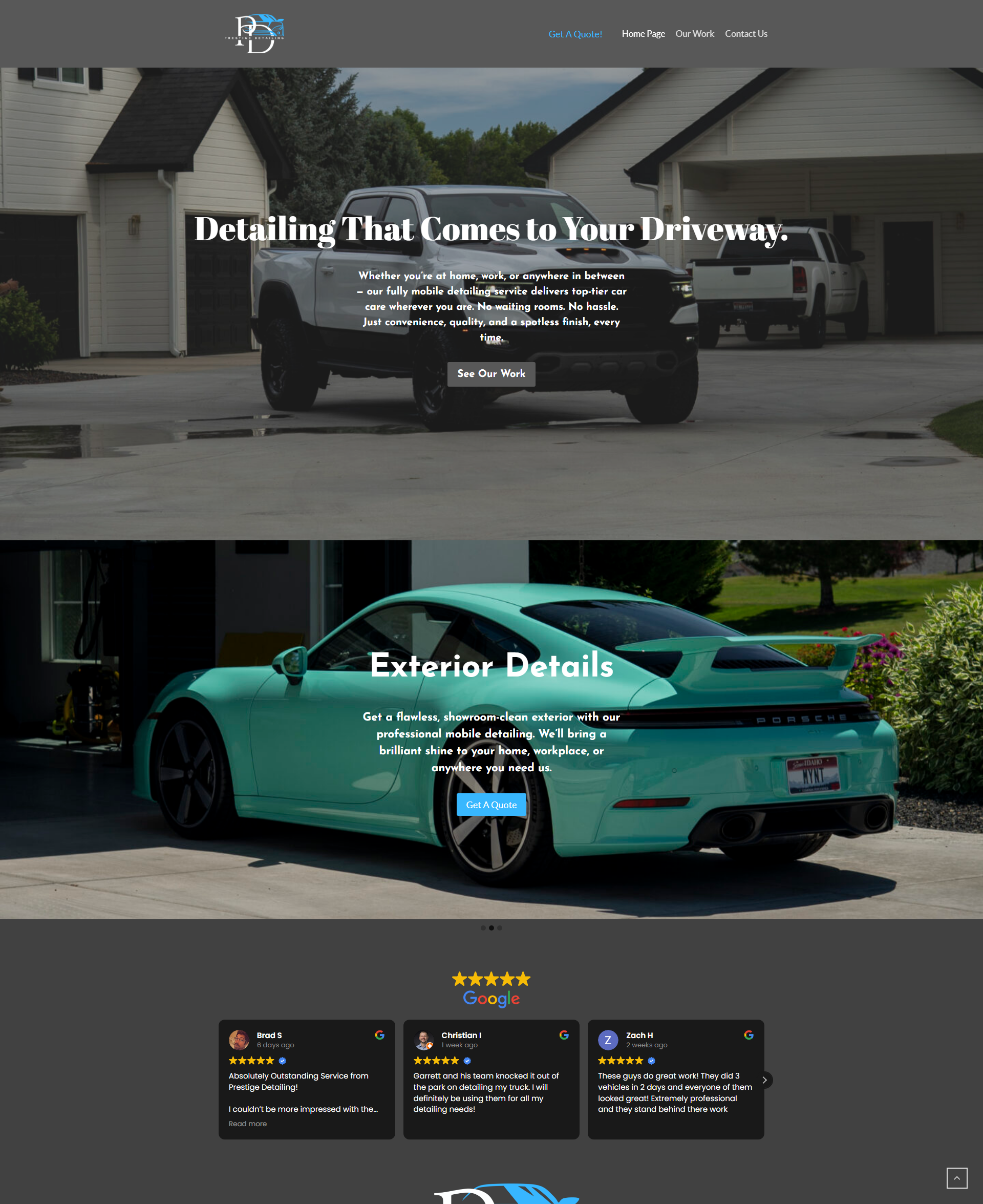 Designed a clean, responsive site with a built-in quote request form, automatic email handling, and instant portfolio uploads, so they can showcase new work the moment it’s done, no delays. The site stays fresh, customers get quick quotes, and the business is the first name people think of when they need a high-quality detail!